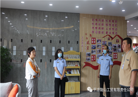 崆峒區(qū)人大常委會(huì)副主任、黨組副書(shū)記杜志民在平?jīng)鍪嗅轻紖^(qū)西郊街道黨工委書(shū)記賈元敏、平?jīng)鍪嗅轻紖^(qū)西郊街道黨工委委員、人大工委主任擺惠帶領(lǐng)下參觀(guān)平?jīng)鲭]山工貿(mào)有限責(zé)任... [詳情]