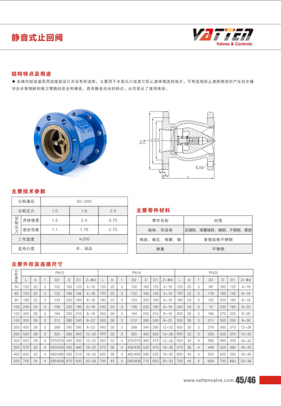 靜音式止回閥。泵閥內(nèi)部流道采用流線(xiàn)型設(shè)計(jì),沒(méi)有倒流體,主要用于水泵出口或其他防止液體倒流的地方,可有效的防止液體倒流時(shí)產(chǎn)生的。水錘沖擊水泵倒轉(zhuǎn)和保衛(wèi)管路的安全和噪音,具有靜音關(guān)閉的特點(diǎn),從而延長(zhǎng)了使用壽命。